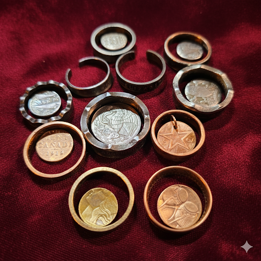Old, World and Interesting Coin Rings, Bells & Pendants